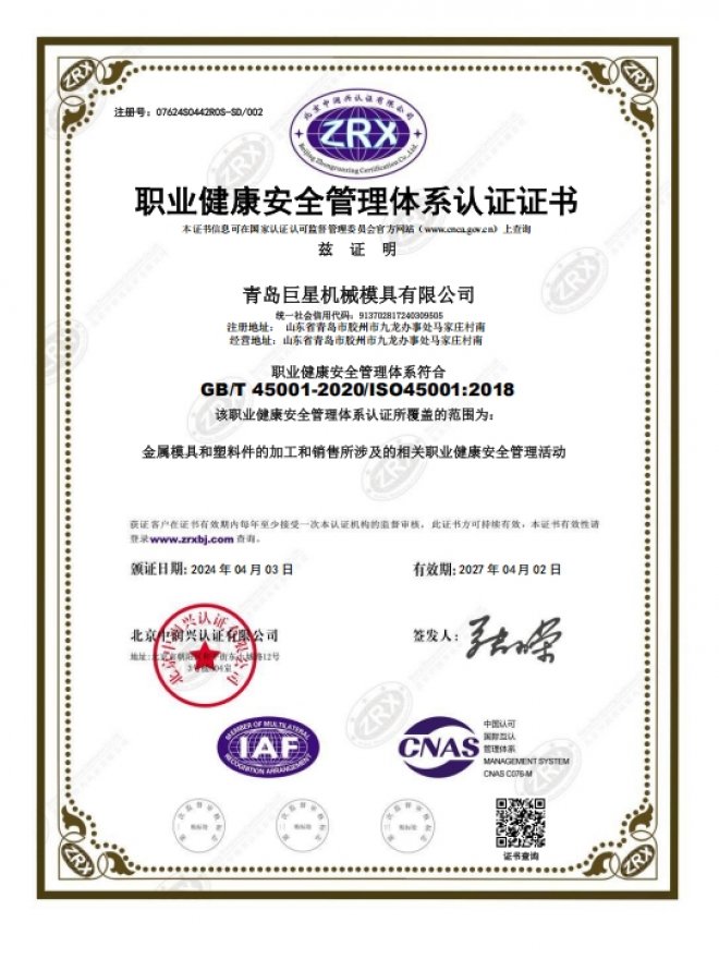 星空在线平台(中国)官网位于美丽的胶州湾畔——青岛市胶州市。成立于1995年。多年来一直致力于塑料模具,金属冲压模具,橡/硅胶模具,板片材挤出模具等模具的研发制造,并且配有塑料制品标准化生产车间,90T-800T各型号注塑机齐全,可为您提供模具研发与产品生产一站式服务,本司已通过ISO9001质量管理、ISO14001环境管理、ISO45001职业健康安全管理等体系认证。目前已与美国通用汽车,韩国大宇造船、现代重工,俄罗斯,巴西,非洲等国家或地区的实力公司建立长期合作关系。